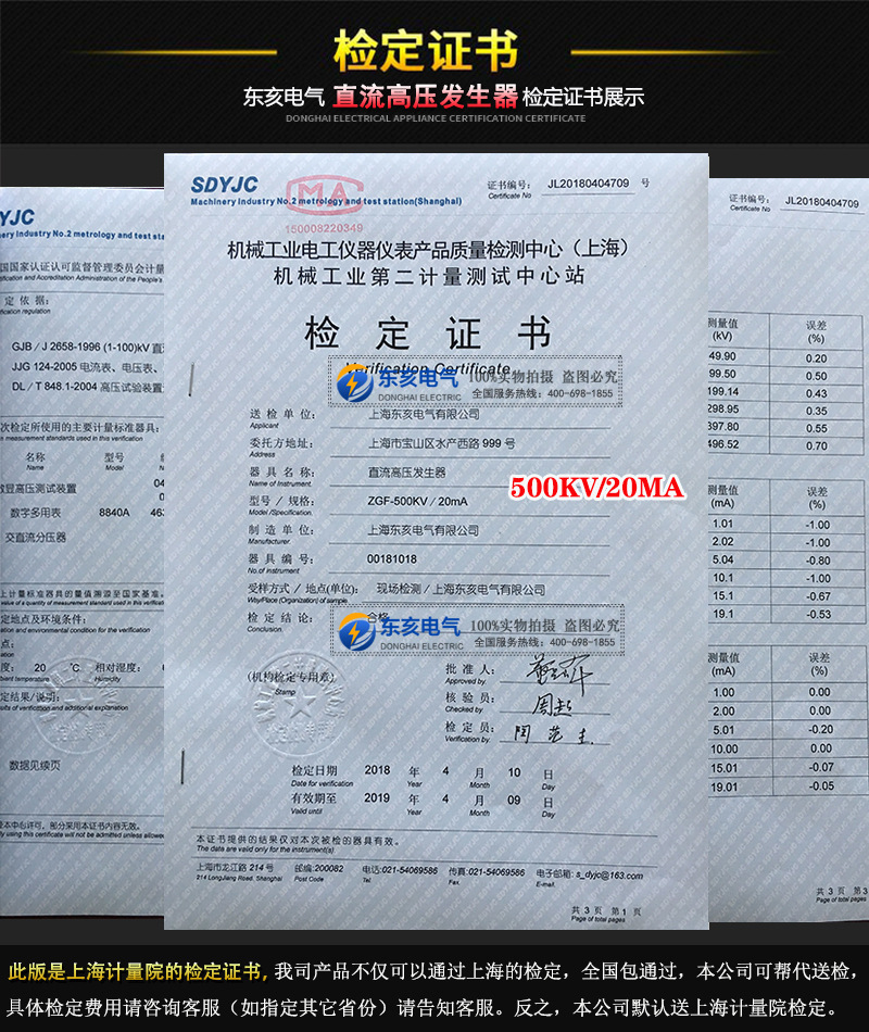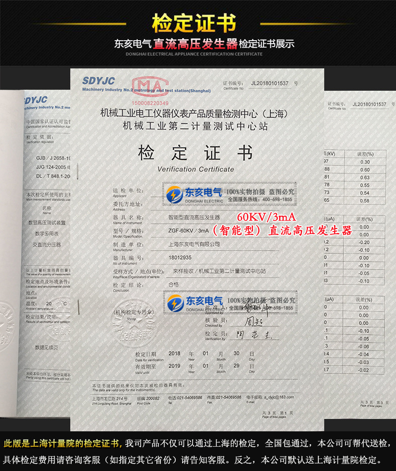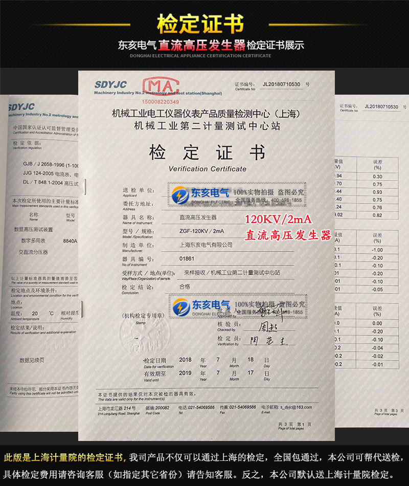直流高壓發生器檢定證書